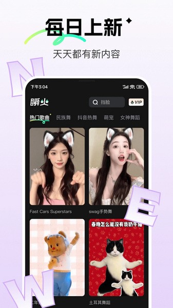 瞬火APP内置大量创意素材,包括不同风格的舞蹈、歌曲、视频特效等,用户可以根据需要自由选择,增强视频的趣味性和观赏性。