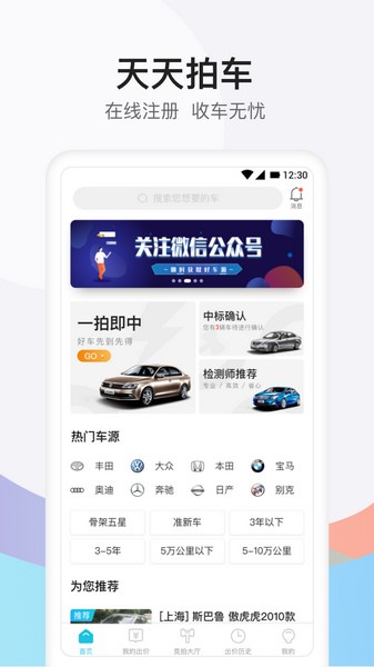 4、车源智能推荐:系统将根据用户历史出价记录,在拍车结束前两小时智能推荐热门车源;