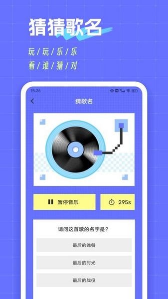 自动记录猜歌用时时长,并能自由暂停播放歌曲进行猜歌;