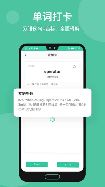1、单词打卡,双语例句加音标,全面理解