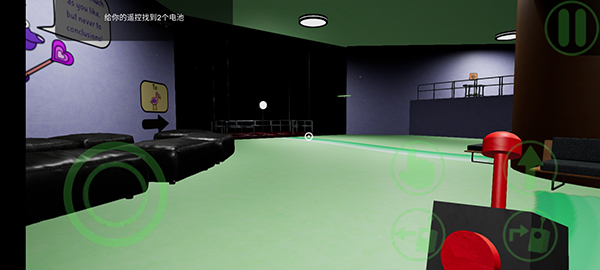 1、刚进入班班幼儿园3游戏,需要先找到两枚电池,一枚电池在挂有电视机的高台上的角落里,点击拾取这枚电池