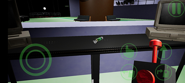 3、收集完两枚电池后,即可修好遥控器,然后来到绿色的大门前,可以看到门的左右两边各有一个红色的按钮