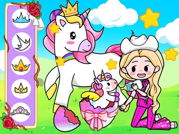 6、家园经营玩法:通过完成任务获取家具建材,自由布置花园城堡房间,如摆放独角兽喷泉、水晶吊灯等装饰,提升家园繁荣度。