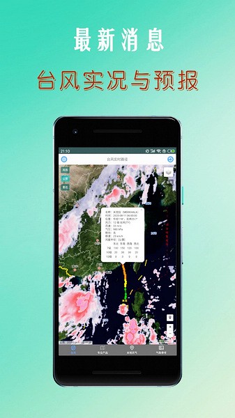 台风路径查询app是一款专注于研究台风动向、台风预警所推出一款手机应用软件,并且里面的数据都是跟中国气象局的信息同步的,所有的数据都非常精准,帮助用户们可以实时监测台风,系统支持卫星云图、风场、雷达图查询,当有台风来临时系统就会及时提醒用户们注意安全,用户可以全面了解分析台风情况,提前做好相应措施,尤其沿海的住户们可以下载使用。