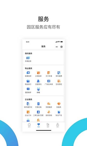 负责线上基础物业与八大平台,将园区办事线上化,并提供企业发展过程中所需的八大主流增值服务品类;