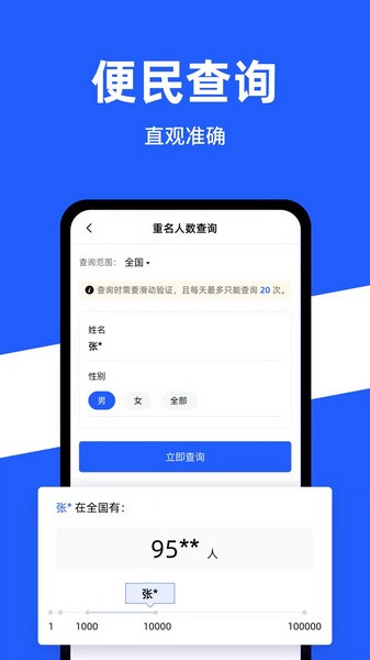 2、输入姓名,点击【立即查询】即可查询同名人数