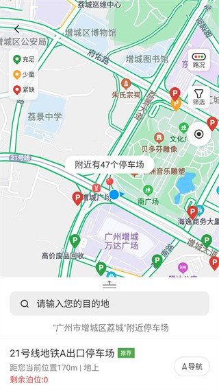 1、直接输入目的地就能够快速获取的附近的停车场信息。
