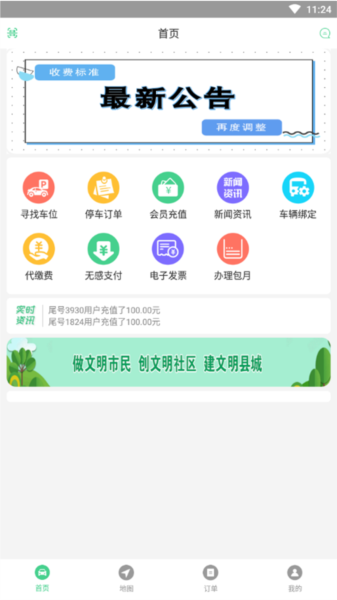3、实时查看停车订单的信息,实时查看清晰地订单内容,知道停车花费;
