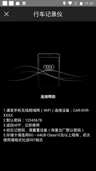 (1)请检查下载的APP是否是“奥迪行车记录仪”。