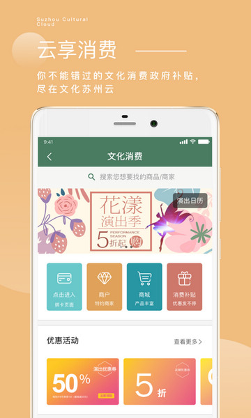 “文化苏州云”一站式综合性数字文化服务平台,是2018年苏州市实事项目之一。平台运用数字网络云技术,深度融合文化事业与文化产业海量资源,实现了文化活动网上预约、文化场馆网上预订、文化资源线上配送、文化艺术普及、特色文化传承、文化产品在线购买、文化消费惠民补贴精准投放等丰富功能。