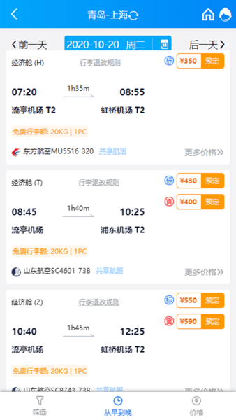 下载,安装,打开软件选择机票预订,查看平台提供的所有航班,挑选合适的航班预订