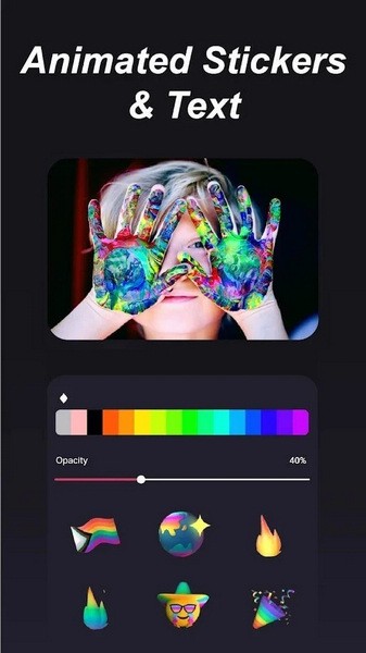 5、添加贴纸:丰富多彩的静态和GIF贴纸、还可以使用图库中的照片来自定义贴纸,支持调整贴图的大小、位置、透明度等,实用度满分!