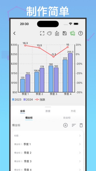 快制图表安卓app手机版是一款方便实用的手机图表快速编辑制作软件。这款软甲能够为用户提供多种类型的图表制作工具,可以快速创建生成需要的图表类型然后填写文字数据等内容。同时,软件还为用户提供多种图表的预设模板,用户可以直接使用模板来填充内容,可以自己去修改模板的具体参数等来改变外观布局等,整体操作还是很简单方便的。