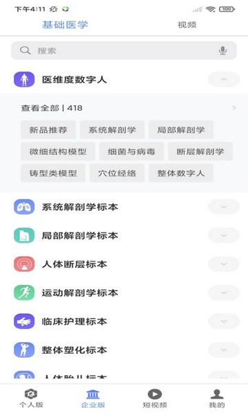 医维度3d人体解剖app包含两套男性和女性三维数字人体,以及若干局部数字解剖模型,同时,医维度还开发上线了实物解剖三维标本库,我们已经完成了数千件真实人体标本的三维扫描,并且该数量将不断增加。