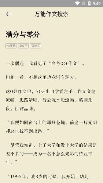 3、不管是小学,初中,还是高中生,都可以在这个平台里面来搜索作文素材。