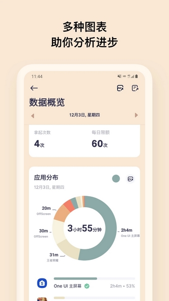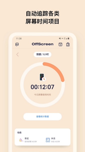 这款OffScreen安卓版防沉迷软件真的太实用了!尤其是对于像我这种容易沉迷手机的人来说,简直是救星。它能帮你记录每天用了多少时间玩手机,还能给每个应用单独统计,这样一来我就清楚地知道哪些APP在“偷走”我的时间了。