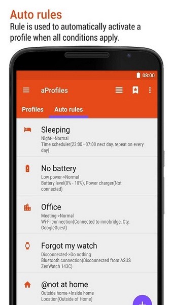 aProfiles使您能够根据位置、时间触发器、电池电量、系统设置、连接的 Wi-Fi 接入点或蓝牙设备等自动执行Android 设备上发生的任务或许多事情。