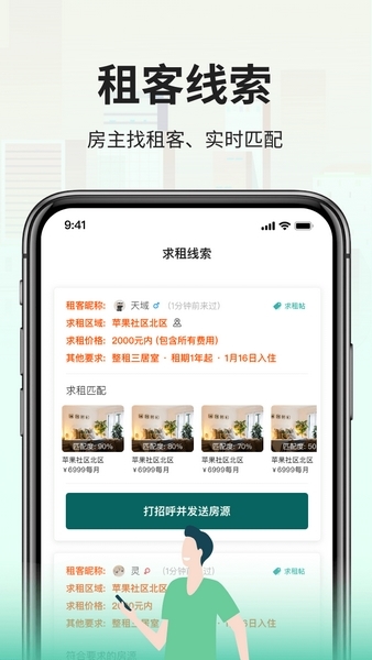 · 租客线索: 高质量租客线索, 主动打招呼
