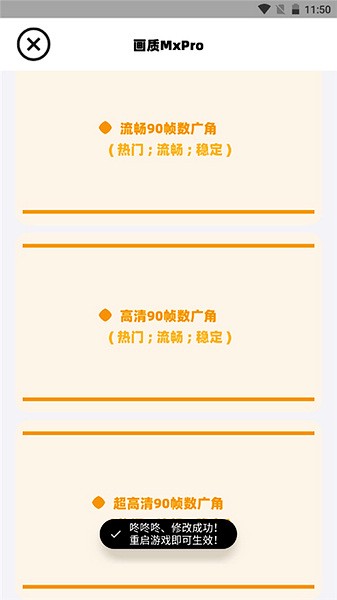 3.保存完毕后,即可开始游戏,画质MxPro120帧软件会自动监测手机设备情况