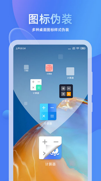 章鱼隐藏是一款功能强大又好玩的隐私保护软件。它的伪装功能特别棒,能把应用图标变成计算器、浏览器之类的常见工具,就算别人翻手机也完全看不出来。而且它不仅是个隐藏器,还有计算器、视频播放这些实用小工具,用起来挺方便。