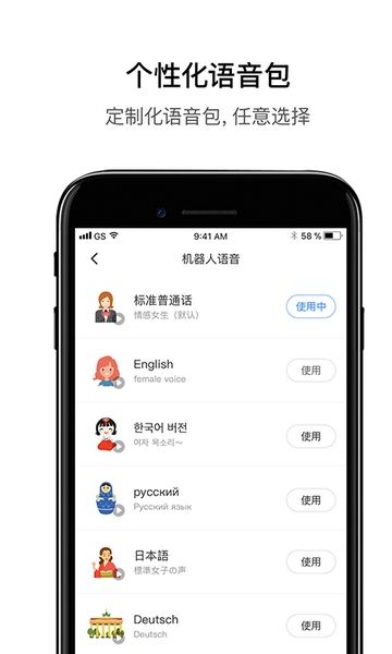 6、语音包:支持多种语音包的切换,系统自动更换机器人语音。