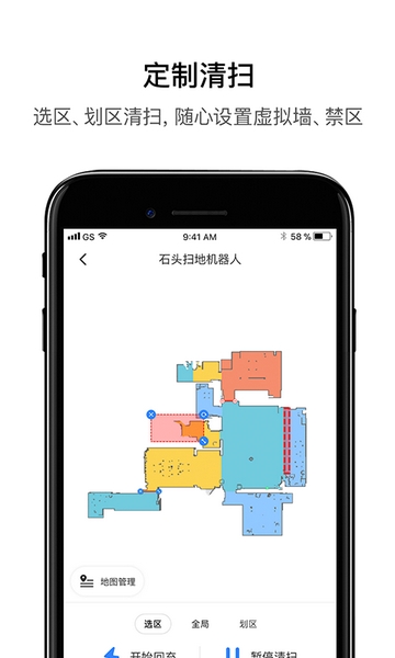 4、指哪到哪:用户可以指定当前需要机器人前去清扫的区域。