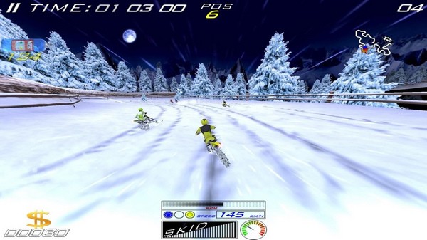 玩家驾驶滑雪摩托,在不同的赛道上狂飙,和对手们决一高下;