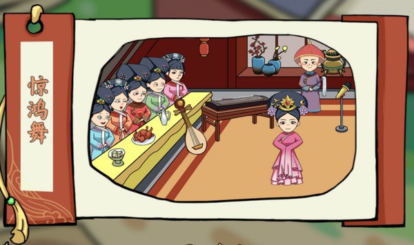 将左侧的盘子移给宫女,获得“一盘黄瓜”;把黄瓜给妃嫔吃,吃完第三根黄瓜开始呕吐,就得到“脏东西”,还有“宫女指的动作”;拖动右侧宫女的手帕递给华妃,就获得“湿巾”;右侧宫女还有“惊慌的动作”;拖动左右两侧宫女,站到华妃左右两侧,出现两次兑换,找到“太监”、“生气”;最后三个人扭打在一起,找到被打翻的八个物品就可以了。