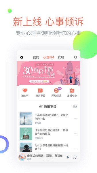 总的来说,心理FM不仅是一个听觉享受的地方,更是一个能让人找到内心平静和力量的平台。如果你也喜欢自我成长或者情感陪伴,这款app绝对值得一试!