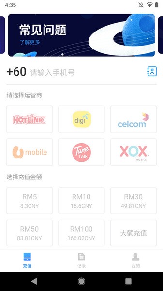 3、唯一的功能是可以帮助用户快速的充值话费,但是在国外充值话费的速度是非常快的