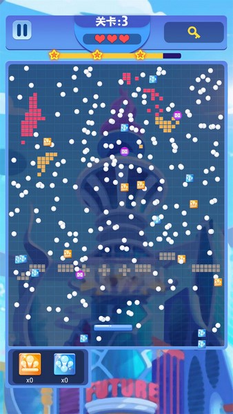 3、按住屏幕水平拖动手指瞄准,放手发射所有等待中的弹球,轻松击碎所有砖块!