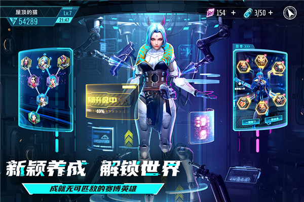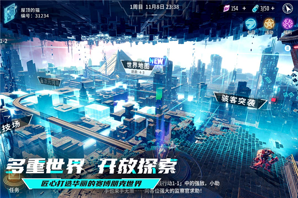 4、游戏的赛博世界充满了科技感,数字文明世界遭受病毒入侵,玩家需要集合卡牌战士组建团队,守卫我们的天幕城。