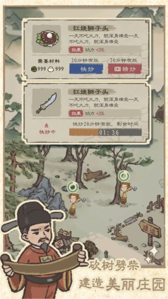 要想养育更多弟子,需要建一座伙房,伙房是制作食物的场所,升级伙房可以提高食物上限。提高食物恢复速度。