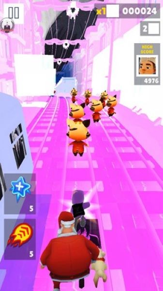 这个地铁跑酷安神定制版是个超有趣的魔改版本,地图变成了粉红色,金币变猫咪,警察穿圣诞老人衣服,看起来就很有搞头。玩法跟原版差不多,但新元素太多啦,特别是圣诞老人追捕的设定,加上各种关卡挑战,玩起来肯定很刺激。