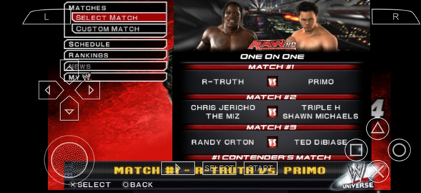 上/下+ R + O:后推出的对手僵持,然后按方向+ O,可以发动罢工摔跤(累计共8种)