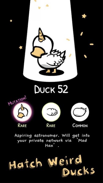 2.游戏操作比较简单,主要就是各种鸭子的养成,每一颗鸭蛋都差不多,但是孵化后就能体验到超惊喜的变异。