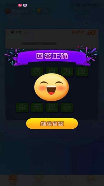 丰富的成语题库,海量的游戏关卡,发挥你的实力不断的答题闯关。