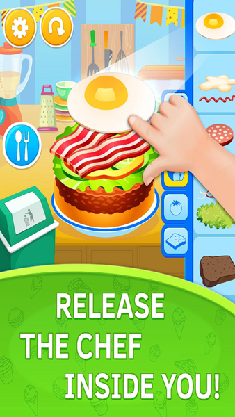 汉堡厨师游戏是一款非常简单有趣的模拟类手游,在这里我们可以快速制作各种各样的汉堡。游戏的画面为卡通风格,操作十分简单,只需在列表中选择需要的食材进行组合就制作完成了。我们可以将食材进行任意的组合,并且还能用这些材料在造型上作出创新,感受发明新品汉堡的乐趣。虽然游戏是英文的,但是玩起来毫无压力,只要看到游戏画面就知道该怎么玩了。
