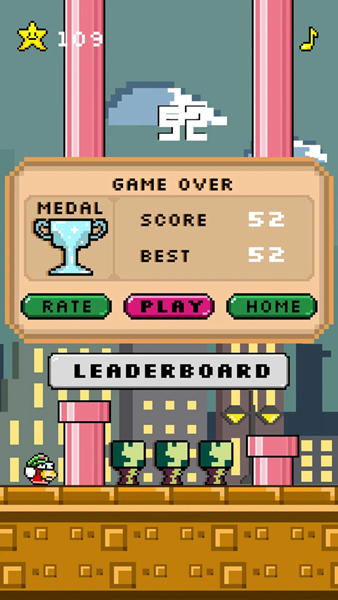 下坠的小鸟游戏是一款休闲有趣的飞行游戏,下坠的小鸟游戏的小鸟非常可爱,小鸟将在城市的柱子当中飞行,你要小心不要碰撞到柱子,收集星星还可以购买其它像素鸟。玩家需要有节奏地点击屏幕,这样才能够让小鸟保持一种匀速飞行的状态,一旦你不点击屏幕了,小鸟就会掉下去。在飞行的过程中,除了要帮小鸟避开陷阱以外,你还要注意多多地帮小鸟收集星星。