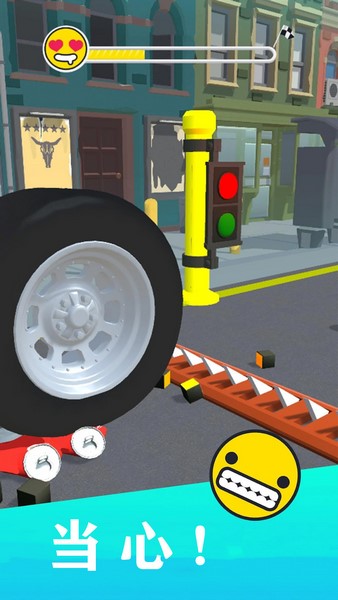 2、闯关途中,遭遇各类形状奇特的障碍物与特殊地形,需灵活调整轮胎方向与速度,巧妙碾压通过,获取更高分数。
