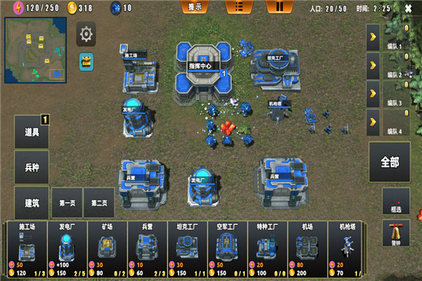 3、高度自由的战术制定:游戏允许玩家自由组合兵种和建筑,可以根据自己的喜好来制定战术。