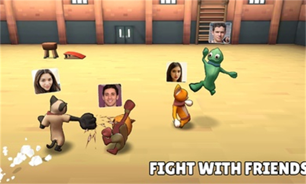 3、自动组队与对手展开较量,使用拳击把对手击倒,然后就可以将他丢下高台,或者收集地图上的星星来获得胜利。