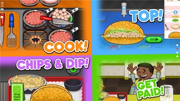 老爹塔可店HD是一款模拟经营游戏,玩家在游戏中经营一家塔可店。你需要从准备食材开始,煎肉、制作玉米片,然后将这些材料组合成顾客点的塔可。游戏中有多种不同类型的饼皮和配料供选择,满足各种顾客的需求。随着游戏进展,你可以解锁新的食材和装饰品来吸引更多的顾客,并参与限时活动获取额外奖励。游戏提供了丰富的玩法,包括完成任务和成就以赚取贴纸,使用这些贴纸可以为顾客解锁新服装。