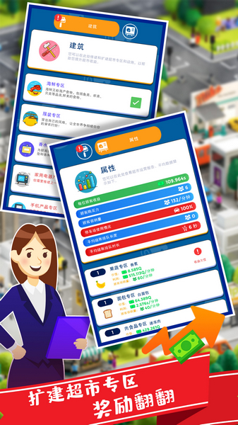 1、你要制定你的策略来管理超市哦,这是好玩又有趣的经营玩法,建立你的超市帝国吧!