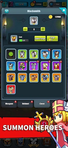1、收集和锻造传奇装备,为您的骑士装备可升级的盔甲和武器,战斗到底!