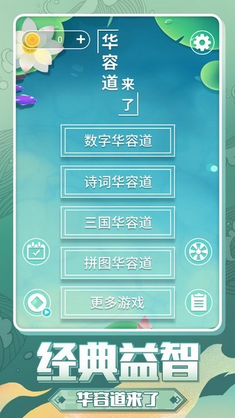 还有益智有趣的数字玩法、文艺诗词华容道、三国华容道、趣味多多的拼图华容道。