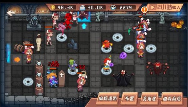 金币的主要作用就是买道具,道具可以在关卡中提前放置,还可以我们放置在自己的鬼屋里面。同时金币还可以解锁育鬼屋里面的孵化格子。