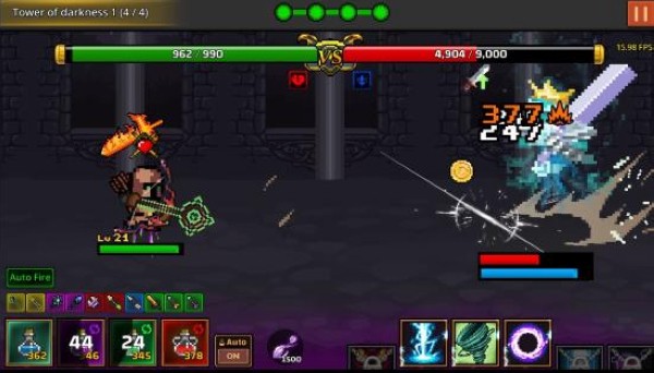 3、你将操控挑战魔王的弓箭英雄开始地牢关卡,人物会自动放射弓箭攻击敌人,而你的任务就是走位!