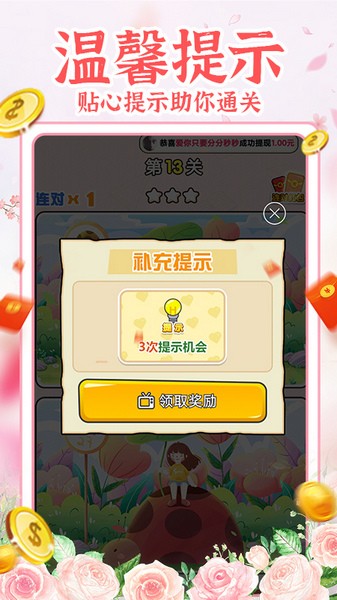游戏里还有各种小道具和奖励机制,比如免费的放大镜可以通过分享获得,每天还能领红包,这点真的不错,既有趣又能赚点小钱。总的来说,找茬赚钱不仅是个不错的消磨时间的方式,还能锻炼观察力,推荐给喜欢轻松休闲游戏的朋友!