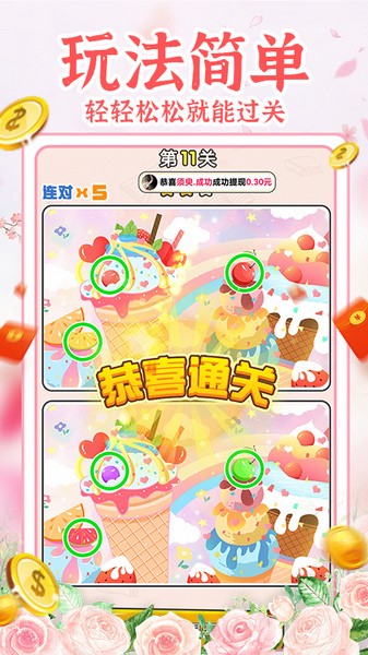 作为一款操作极其简便却充满趣味的找不同游戏,找茬赚钱自推出以来就迅速吸引了大量玩家。这款游戏的核心玩法就是让玩家在一系列几乎完全相同的图片中寻找差异。从最初的入门级关卡开始,游戏逐步引导新手适应其独特的挑战方式。随着难度的不断升级,不仅考验玩家的眼力,还提升了观察的细致程度,成为了一款非常适合打发碎片时间的理想选择。